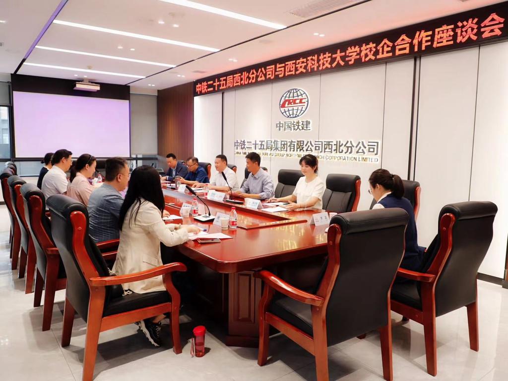 座谈会上,郭小平就我校历史沿革、办学特色、学科建设、专业设置、人才培养、科学研究和学生就业创业等内容进行了介绍,对中铁二十五局在促进学校学院人才培养做出的贡献表示感谢。希望以此次访企交流为契机,进一步拓宽校企之间在人才培养、人才共享上的合作领域,共同推动用人、育才的精准匹配。谌勍代表公司对郭小平一行的来访致以热烈欢迎,并介绍了企业发展概况、专业特色、海外优势、用人需求以及人才培养方针。他表示,欢迎学校推荐优秀毕业生到企业开展实习实训和就业,希望双方进一步拓宽校企合作渠道,在人才联培、实习就业、项目合作等方面进行深度交流,共同提高育人实效,更好服务区域经济发展。
