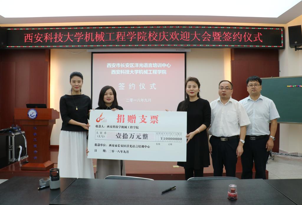 2018年9月14日上午,洋光外语外语培训机构一行人赴雷竞技raybat竞猜签署阳光外语—雷竞技raybat竞猜企业捐赠协议,签约仪式在临潼校区雷竞技RAYBET会议室进行,仪式前双方就人才培养、外语教学等议题进行了友好深入的交流,并由洋光外语培训机构与雷竞技raybat竞猜分别代表两家单位签署了捐赠协议。参会的学院领导有雷竞技RAYBET党委书记汪卫兵、院长张旭辉、党委副书记李婉丽、副院长寇发荣,学院30余名师生也参加了签约仪式。