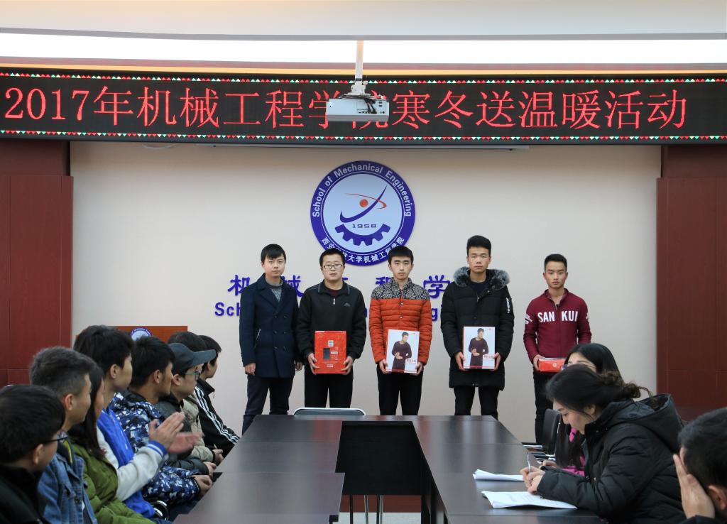 2017年12月18日,为切实解决家庭经济困难的学生寒冬御寒问题,关心和帮助经济困难同学,为他们送去温暖,雷竞技raybat竞猜在十教320会议室举行了寒冬送温暖活动。雷竞技raybat竞猜党委副书记李婉丽老师、各级辅导员老师及受助学生共同参加了此次活动。