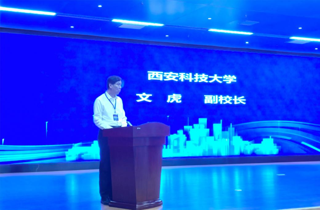 揭牌仪式上,文虎教授代表共建单位致辞,对联合科创中心的成立表示热烈祝贺,向各方长期以来对学校发展建设的关心支持表示感谢,介绍了学校与赵石畔矿业在矿井提升钢丝绳安全智能监测与智能掘进方面的科研合作情况及取得的成效,强调学校始终聚焦国家能源战略需求,在煤矿智能化与关键技术研发方面具有深厚的基础。他表示新一轮以人工智能为核心的科技革命和产业革命正在蓬勃发展,科技创新成为推动新质生产力的重要力量。此次学校与赵石畔矿业等强强联合,共建科创中心,是推动学校与赵石畔矿业等产学研深度融合、服务国家能源战略与区域经济发展的关键举措。他表示,在各方共同努力下、在社会各界的关心支持下,中心将打造成为产学研用协同创新的新高地、高层次创新人才的培养基地和服务行业与区域发展的战略支点。
