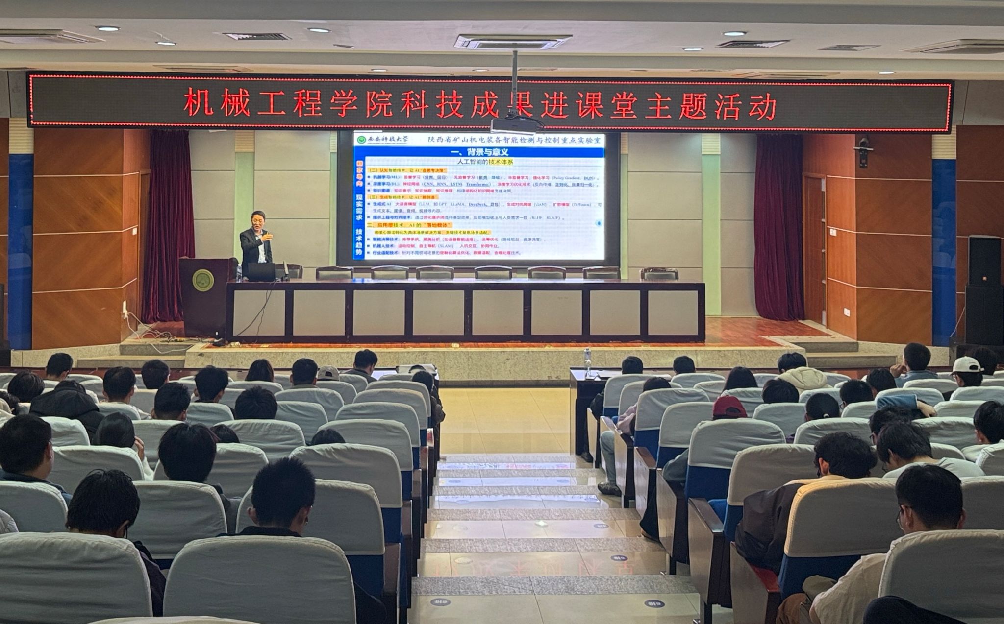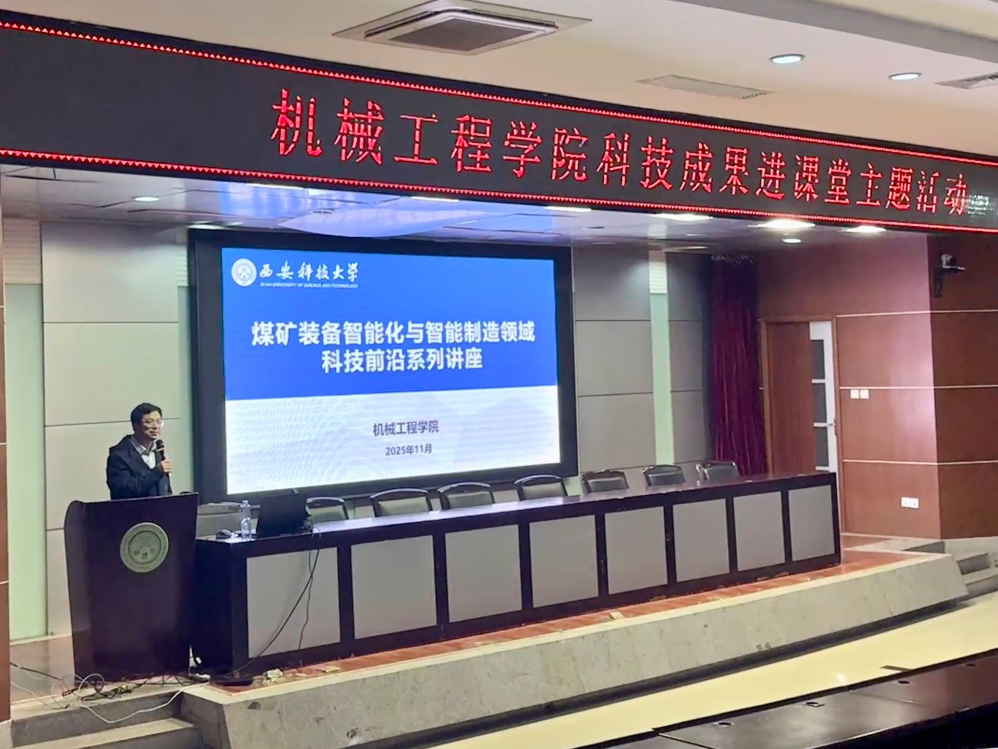 为积极对接国家“十五五”规划对智能制造、能源安全与科技自立自强的战略导向,深入贯彻落实《raybet在线官网科研成果反哺教学工作实施管理办法(试行)》《raybet在线官网本科生产教融合、科教融汇育人实施办法(试行)》等文件精神,雷竞技raybat竞猜依托陕西省煤矿智能化现代产业学院等平台,将“科技成果进课堂”从构想转化为生动实践,11月3日完,雷竞技raybat竞猜在图书馆二楼报告厅成功举办“科技成果进课堂”主题活动首场报告会——“煤矿采掘装备智能化”“煤矿装备智能故障诊断与健康维护”。本场讲座由机械电子系和仪器科学系牵头组织,学院首届本硕连读班和机电专业300余名学生参加学习,副院长毛清华教授主持讲座。