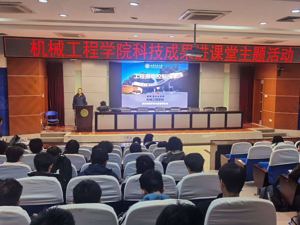 为积极对接国家“十五五”规划中“智能设计与制造”战略导向,深入贯彻落实《raybet在线官网科研成果反哺教学工作实施管理办法(试行)》《raybet在线官网本科生产教融合、科教融汇育人实施办法(试行)》等文件精神,雷竞技raybat竞猜依托陕西省煤矿智能化现代产业学院等平台,将“科技成果进课堂”从构想转化为生动实践,11月26日晚,雷竞技raybat竞猜在图书馆二楼报告厅成功举办“科技成果进课堂”主题活动报告会——“工程振动控制技术”“掘进工作面智能通风降尘技术及装备研究”。本场讲座由机械设计系牵头组织,学院23级、24级、25级机械设计制造及其自动化卓越、本硕、领军班200余名学生参加学习。机设系主任陈艳主持讲座。